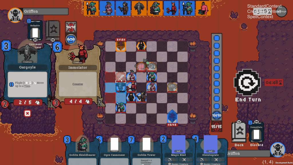 Aspects of the project I developed personally include status effects, state-machines for piece visuals, hand sorting, streamlining action confirmation, and more.