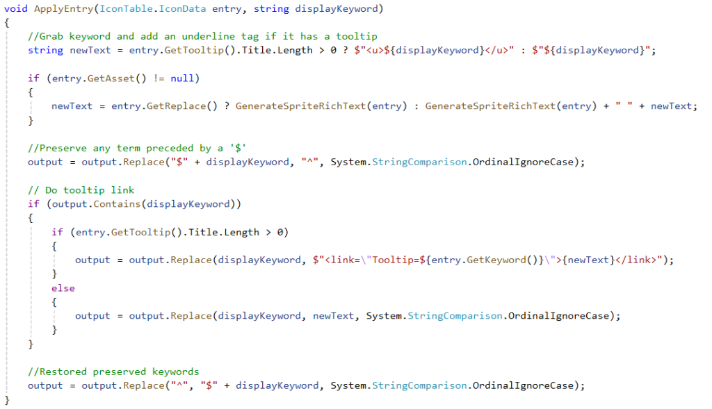 A parsing system I created to automatically insert tooltip links into card text based on keywords present in that text