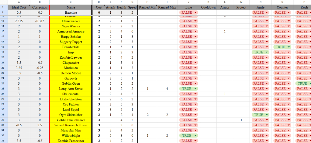 For example, the existence of a board in Cardinomicon meant that the practical value of a simple statistic like Attack could be dependent on several other factors that influenced a card’s area-of-control. While this impact could theoretically be guessed on a whim for each card and revised later, this approach is unwieldy and inconsistent at-scale.