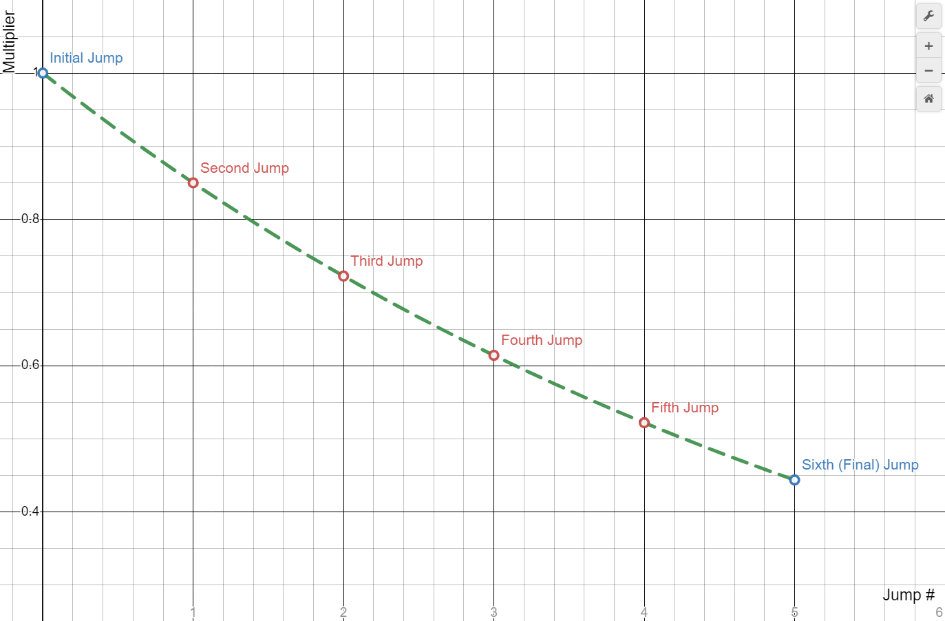 Final iteration of my custom jump decay function