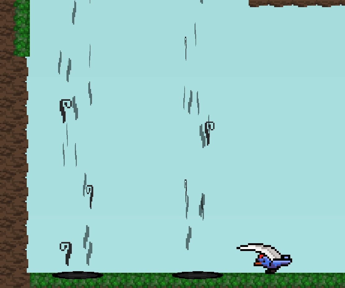 My primary aim while designing these mechanics was to ensure they complemented the player’s existing moveset. In other words, I sought to create novel obstacles that still challenged the same skillset as the rest of the game. For example, I specifically made an allowance for the player’s down smash ability to supersede the strength of the wind streams so that this new mechanic would meaningfully interact with every existing tool in the player’s arsenal.