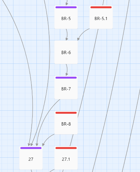 A section of Familiar Delusion heavily modified to accommodate time restraints (the purple bar is a modified node; red is a cut node)