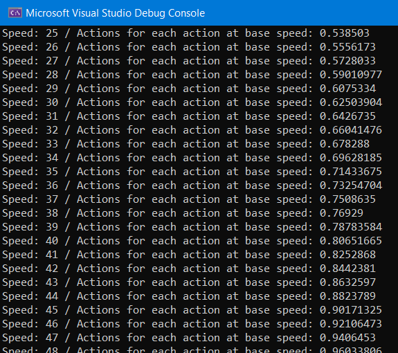 A simulation I created to test the practical effect of Lunar Sword‘s Speed stat on the average number of actions a character will get compared to others.